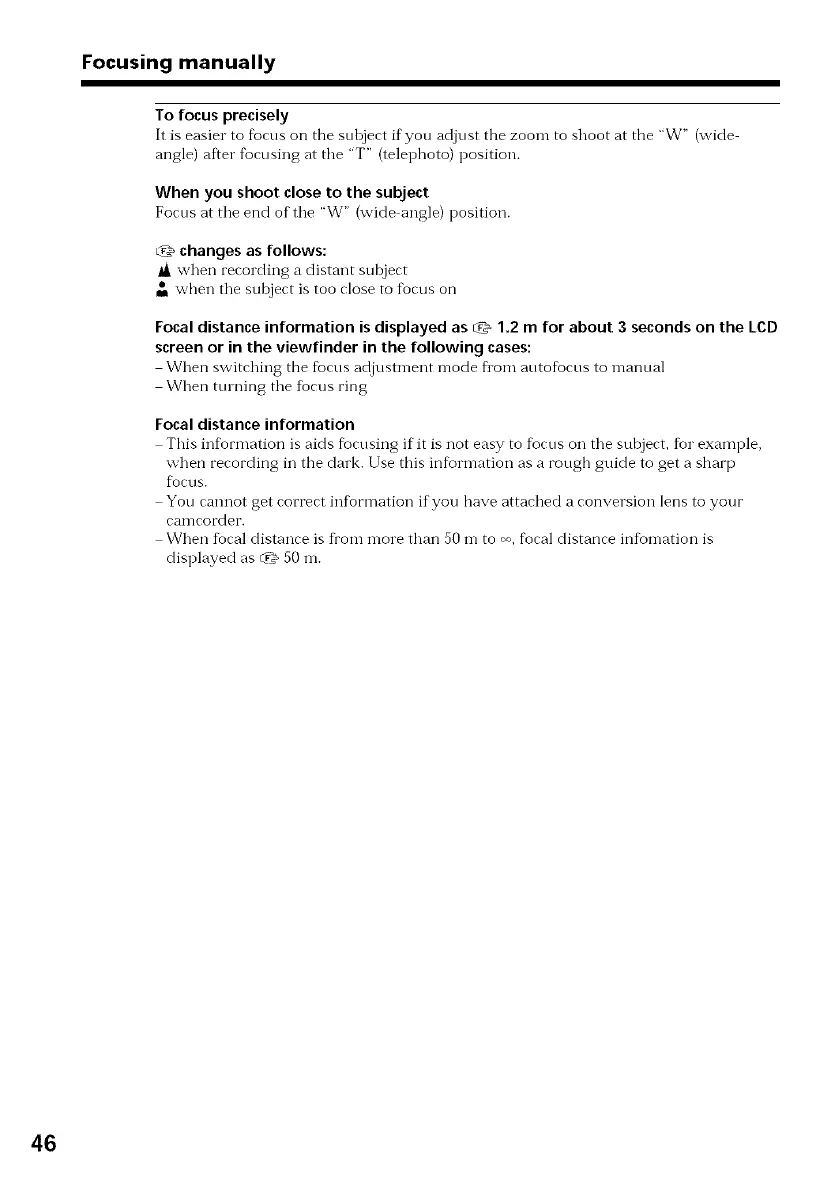 Focal distance information is displayed as _ 1.2 m for about 3 seconds on the LCD