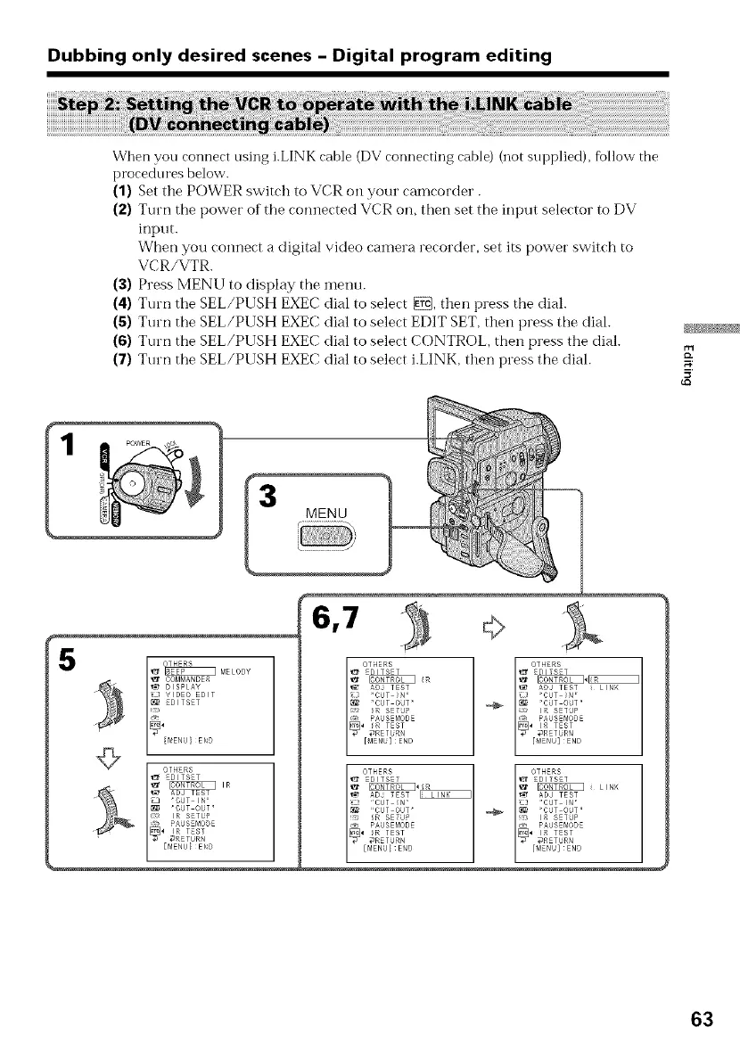 (7) Turn the SEL/PUSH EXEC dial to select i.LINK, then press the dial.