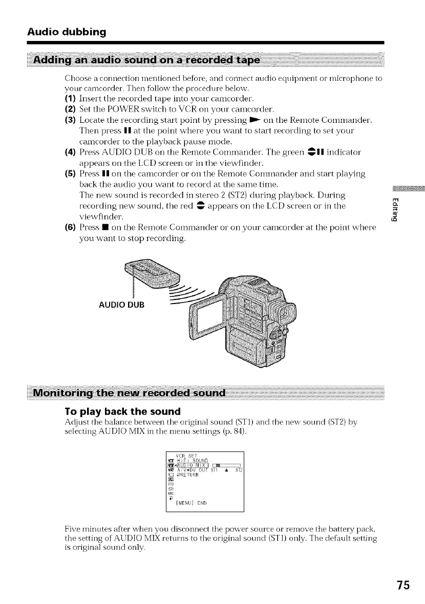 (4) Press AUDIO DUB on the Remote Commander. The green wall indicator