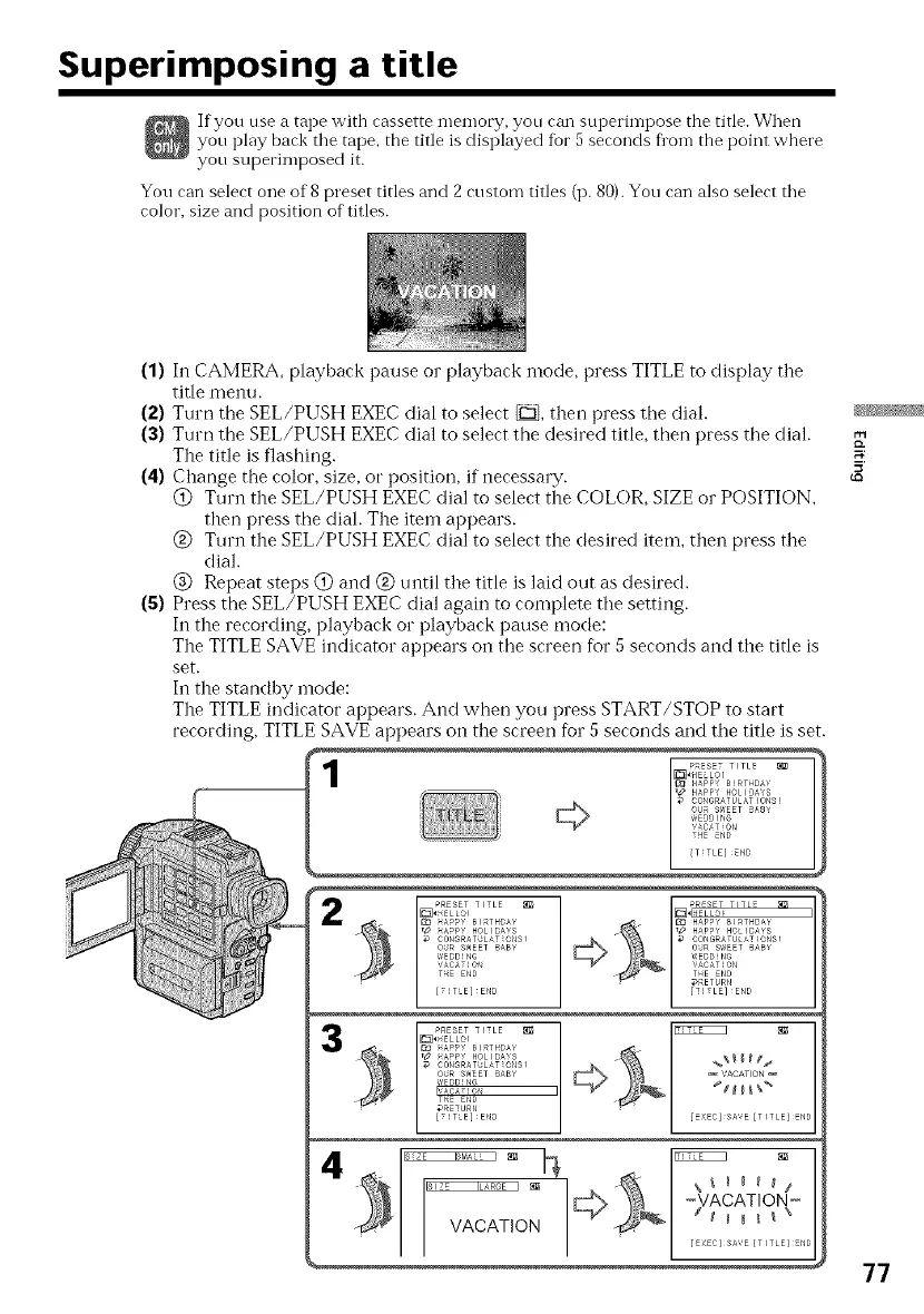 If you use a tape with cassette memory, you can superimpose the title. When