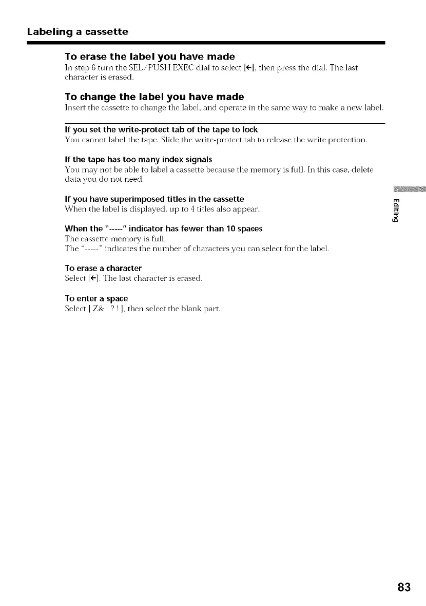 You may not be able to label a cassette because tbe memory is fidl. In this case, delete