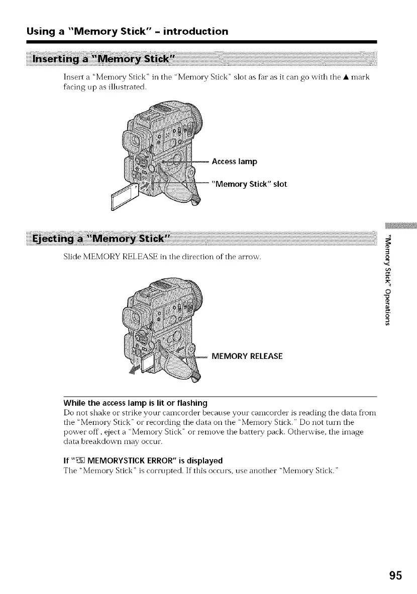 tile "Memory Stick" or recording tile data oil the "Memory Stick." Do not turn tile