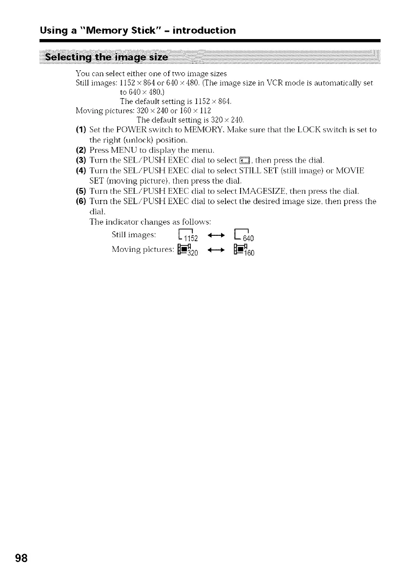 (6) Turn the SEL/PUSH EXEC dial to select the desired image size, then press the