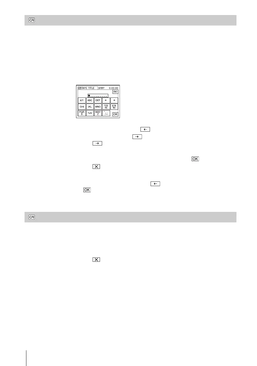 • To erase the label you have created, touch repeatedly to erase the characters, then