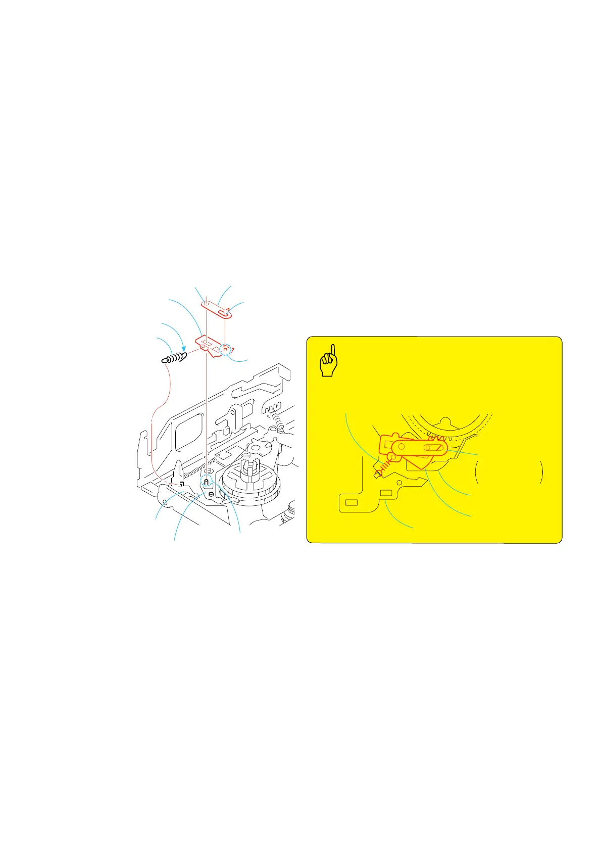 2) Hook the tension spring (release rack) 2 on the hook of the