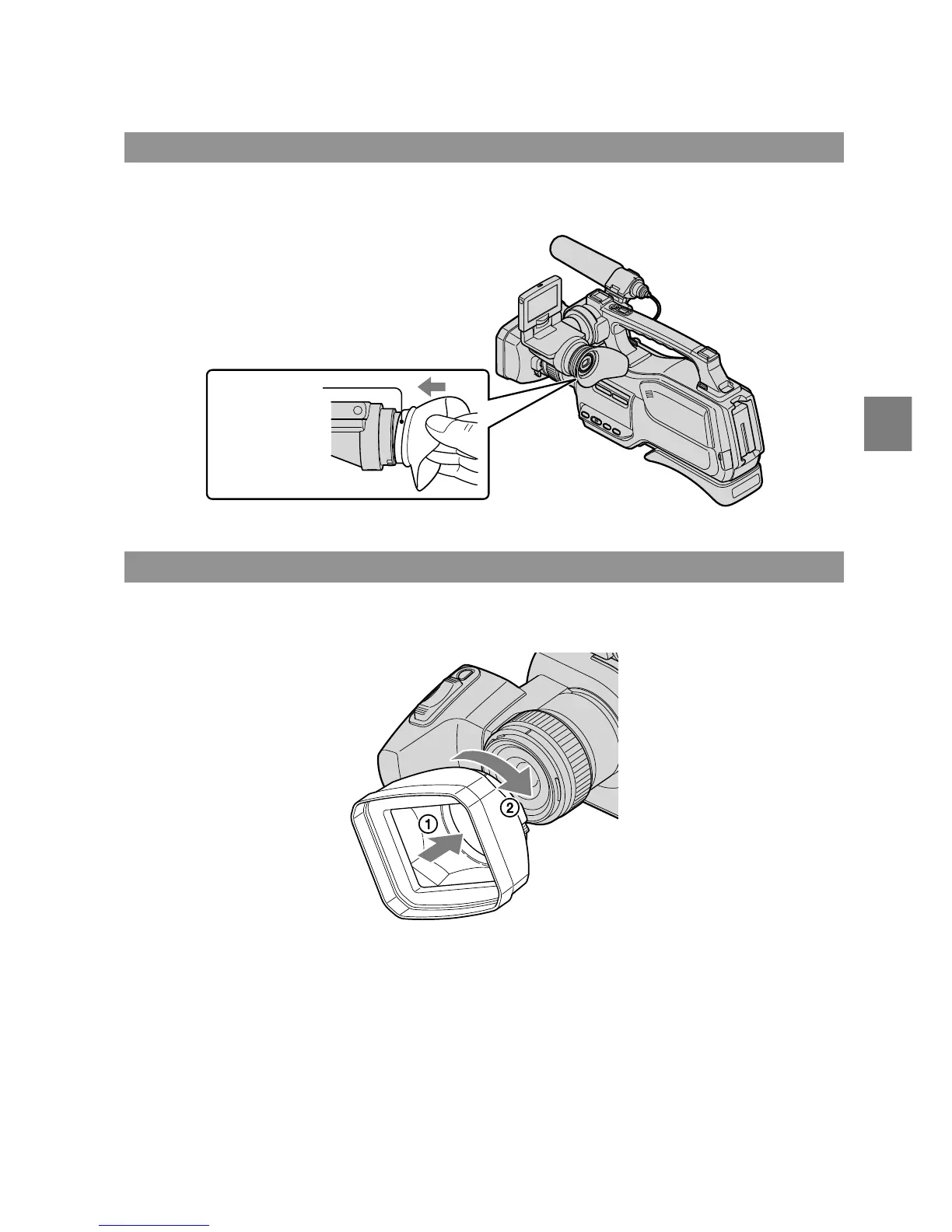 Sony DCR-SD1000E - Attaching the Eyecup; Attaching the Lens Hood