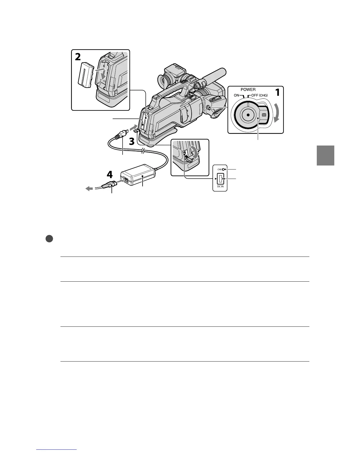 Connect the AC Adaptor to the DC IN jack of your camcorder. Be sure that