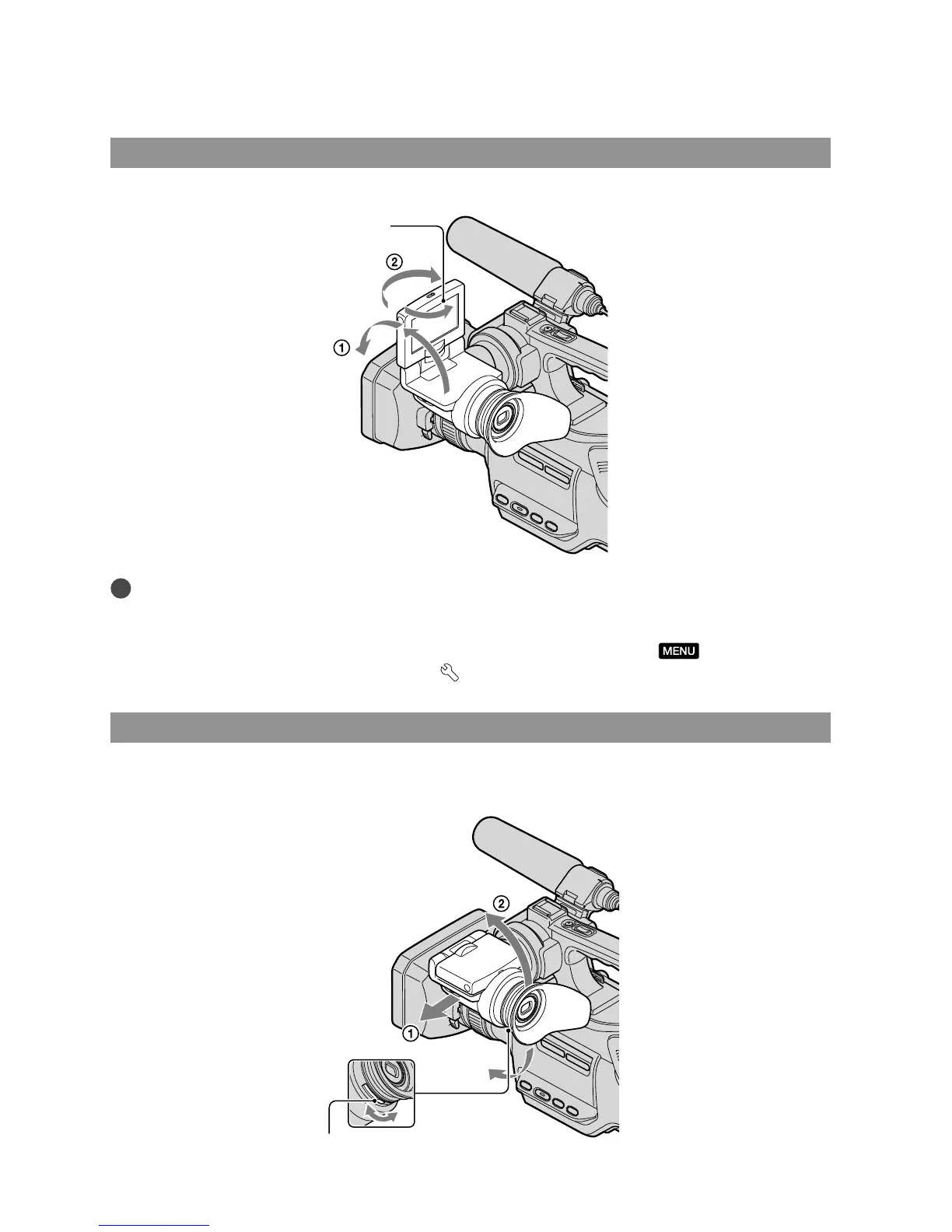Pull out the LCD panel block to adjust the position (), and rotate the viewfinder to the best