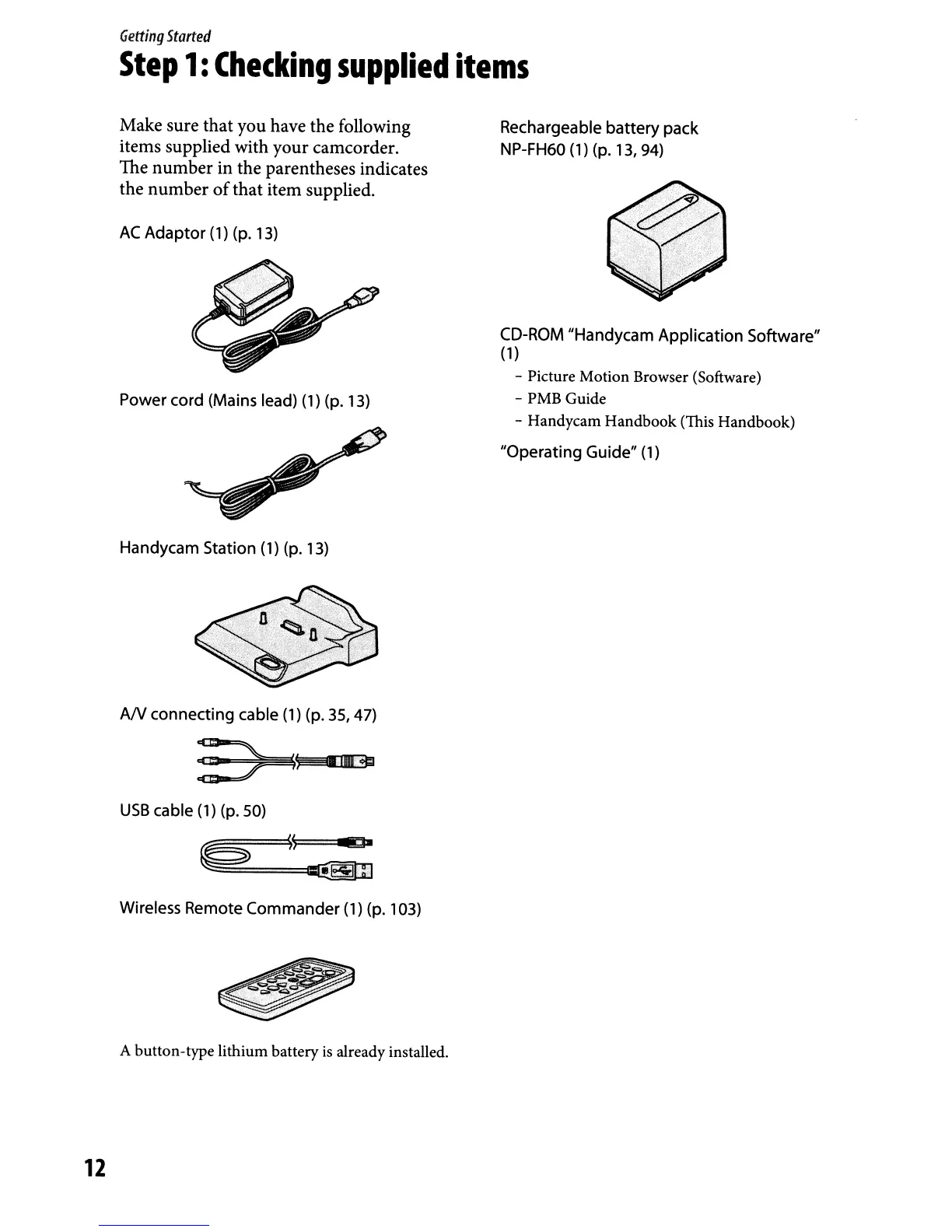 items supplied with your camcorder.