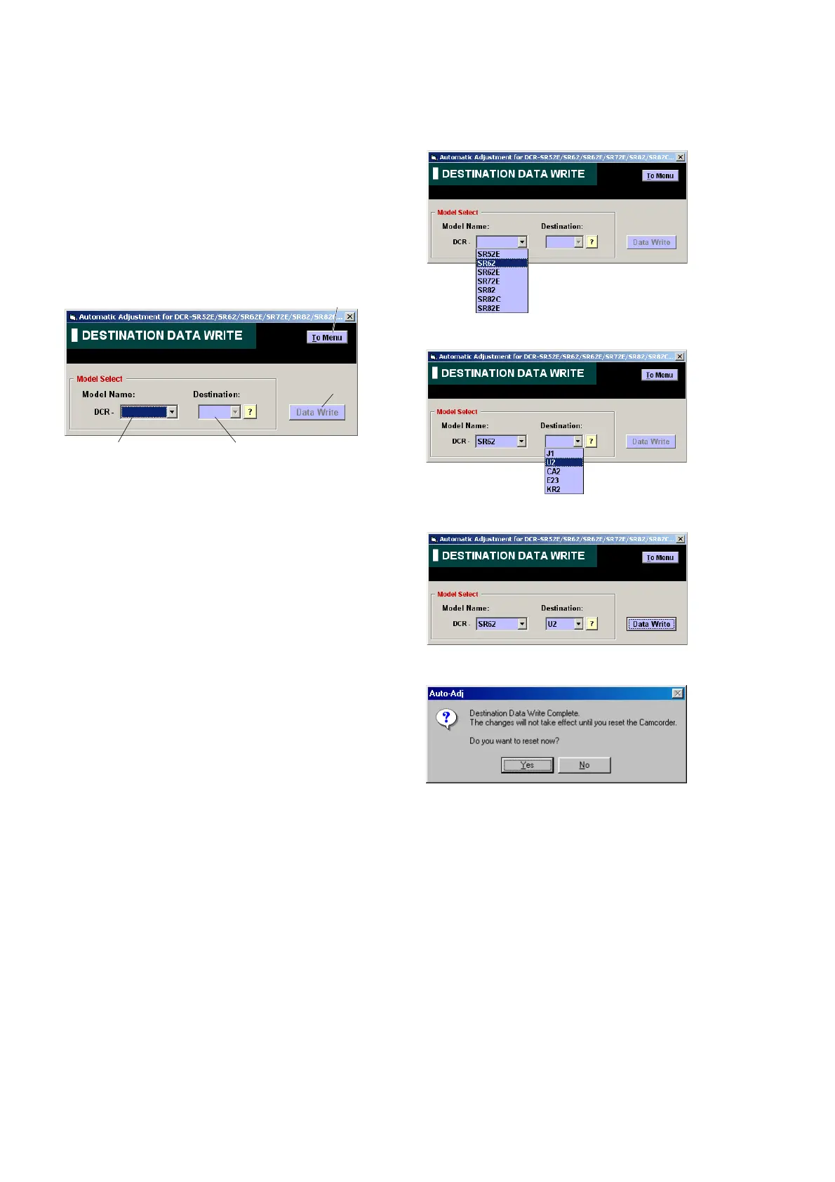 Click the [DESTINATION DATA WRITE] button on the Main Menu