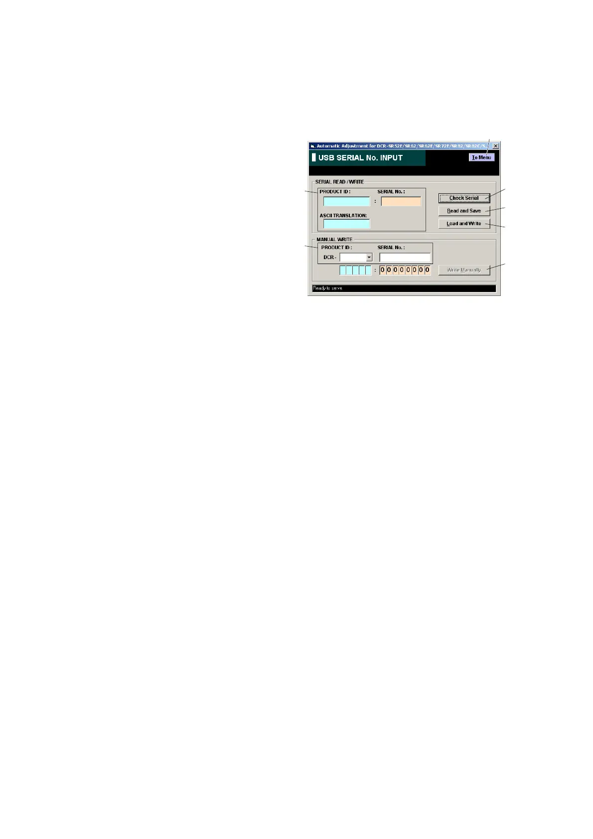 Click the [USB SERIAL No. INPUT] button on the Main Menu screen,