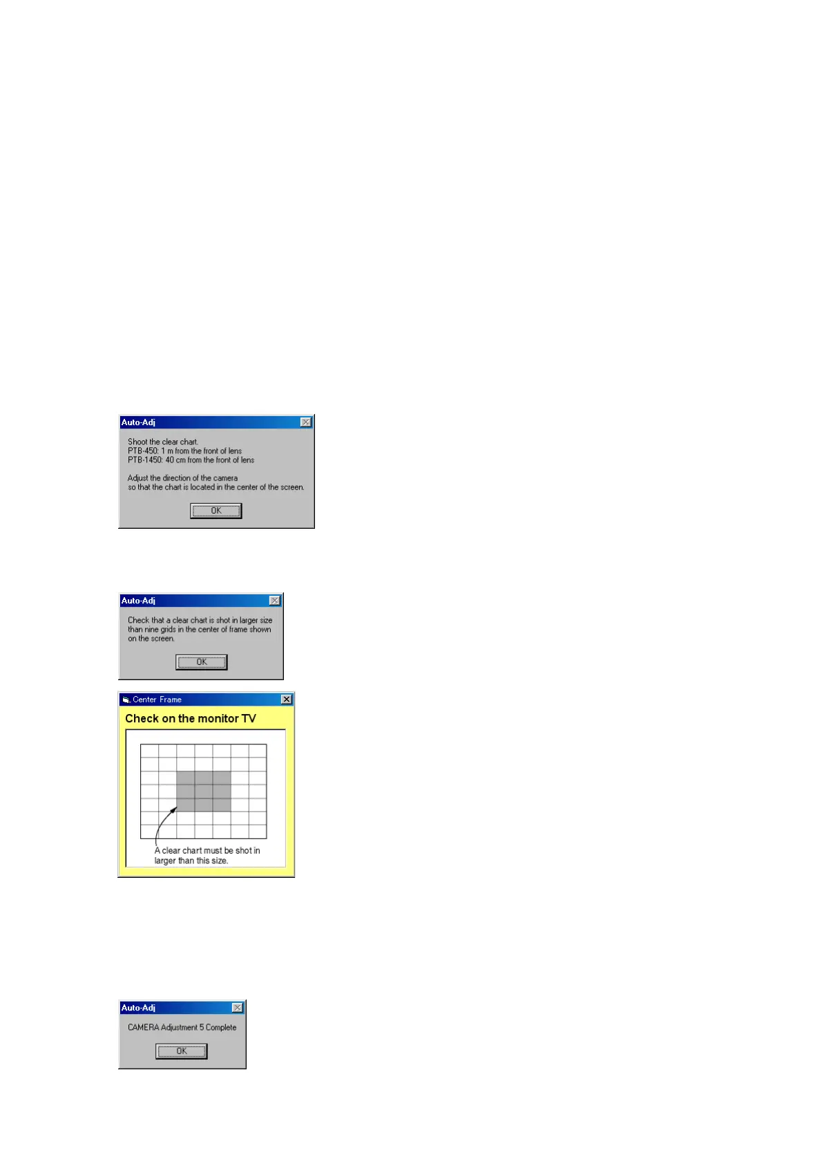 Camera Adj.”, the following message is displayed during the