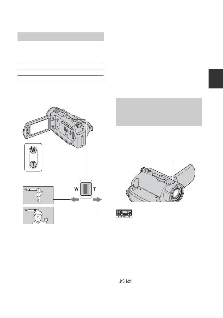 is set to the T (Telephoto) side (except for DCR-