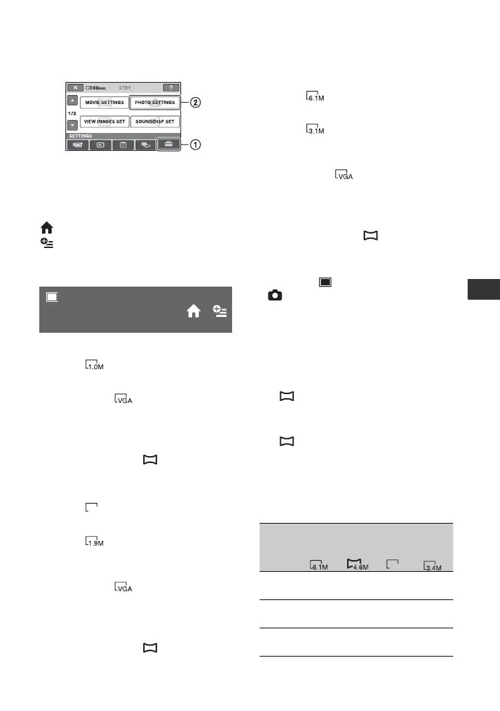 • Still images are recorded in the following sizes
