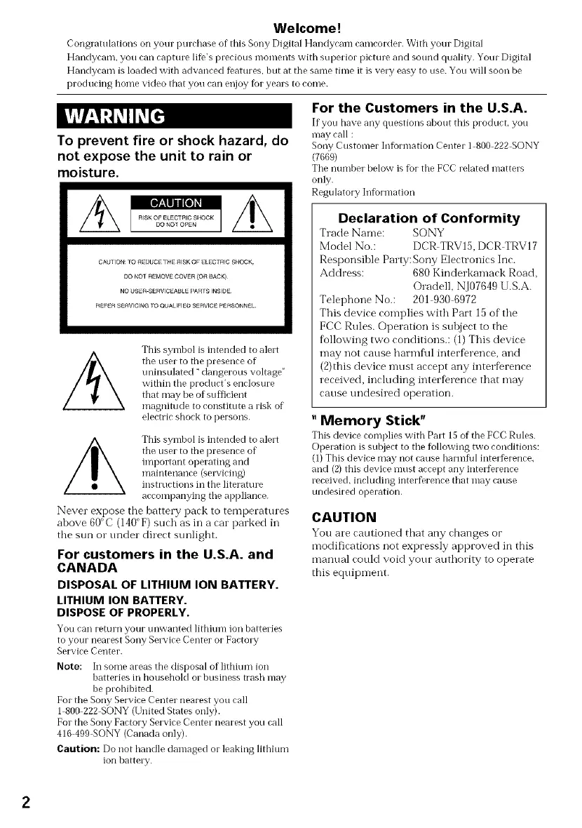 Congratulations on your purchase of this Sony Digital Handyranl camrorder. With your Digital