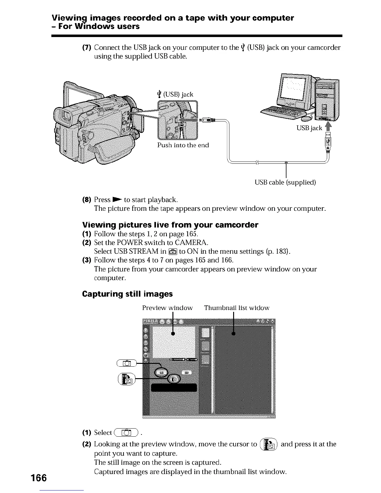 (7) Connect the USB jack on your computer to the _ (USB) jack on your camcorder