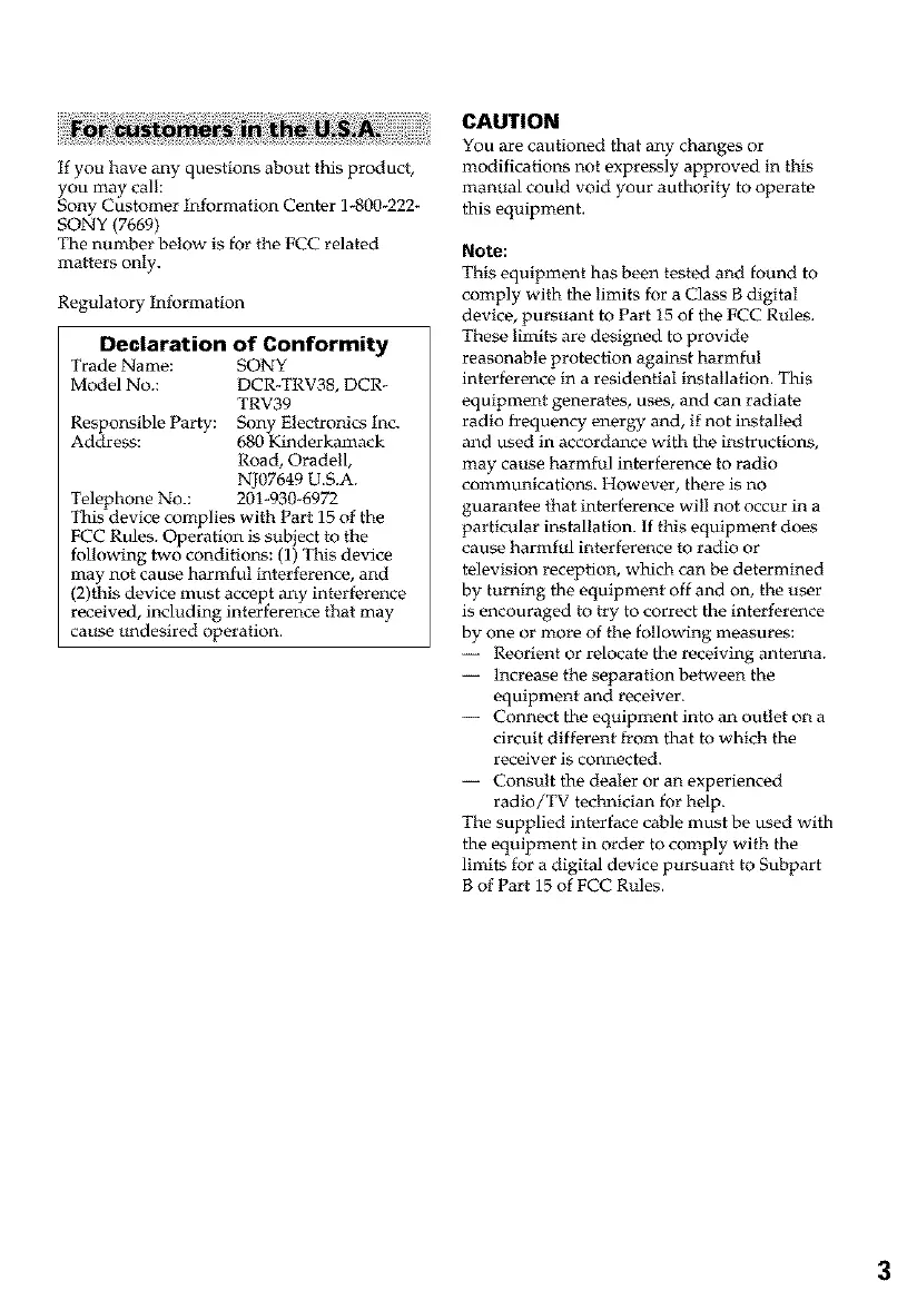 Model No.: DCR-TRV38, DCR-