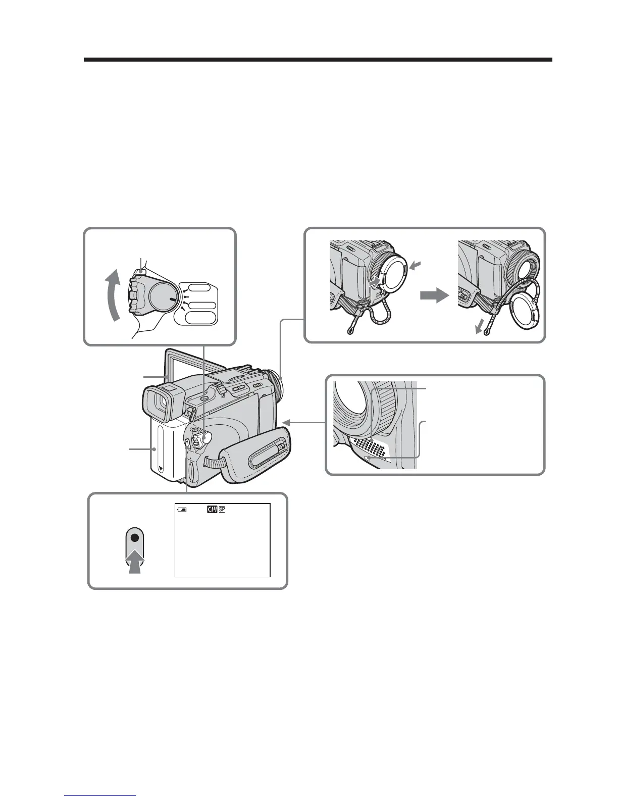 (1) Remove the lens cap and pull the lens cap string to fix it.