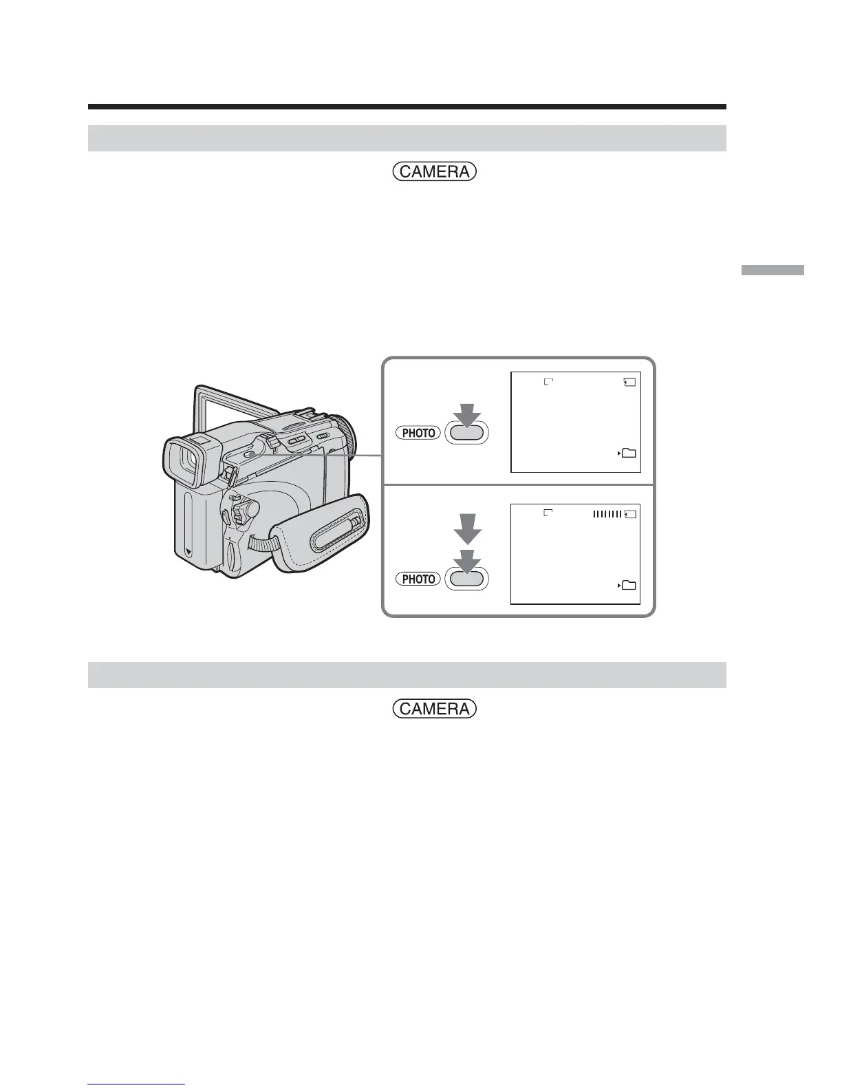 (1) Keep pressing PHOTO lightly until a still image appears. The CAPTURE