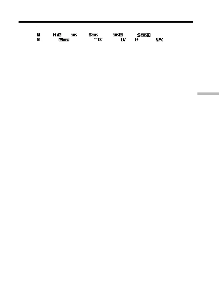 8 mm, Hi8, VHS, S-VHS, VHSC, S-VHSC,