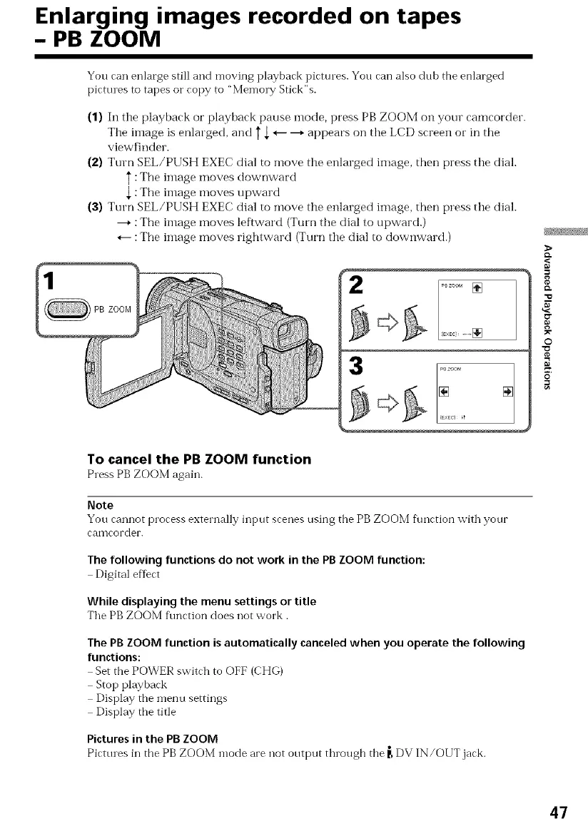 Picttues in the PBZOOM mode are not output through the _ DV IN/OUT jack.