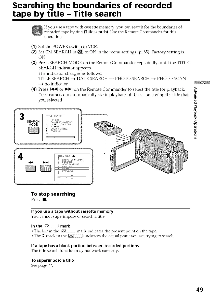 recorded tape hy title (Title search). Use the Remote Commander for this