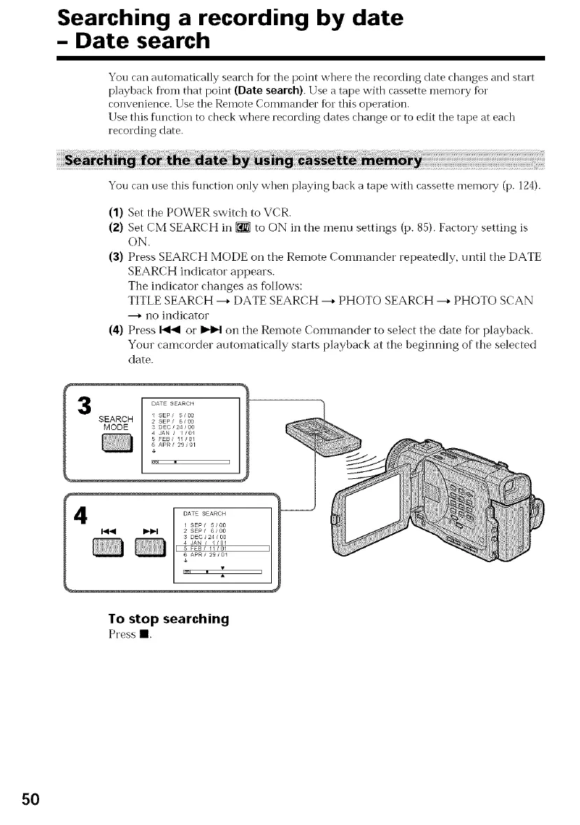 playback fl'om that point (Date search).Use a tape with cassette memory fbr