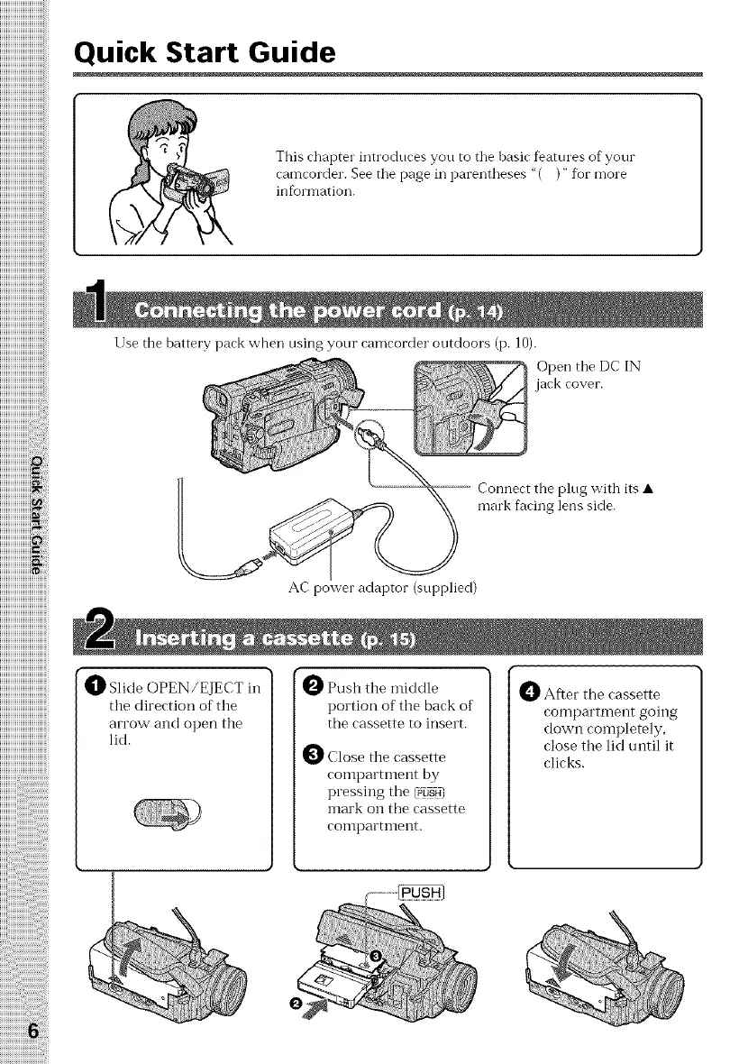 Use the battery pack when using your camcorder outdoors (p. 10).