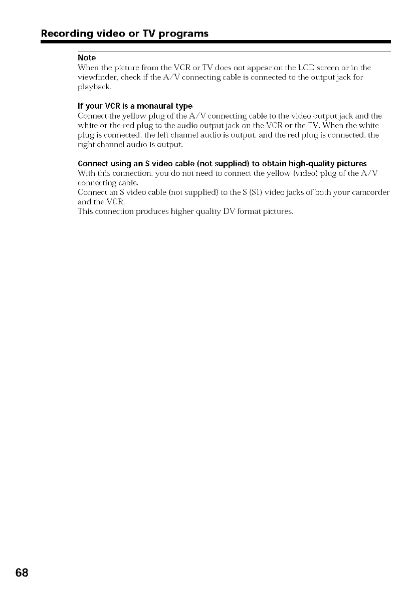 Connect an S video cable (not supplied) to the S (S1)video jacks of both your camcorder