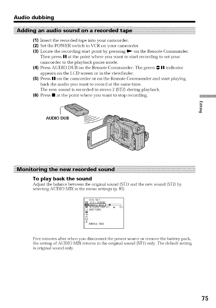 (4) Press AUDIO DUB on the Remote Commander. The green _ I I indicator