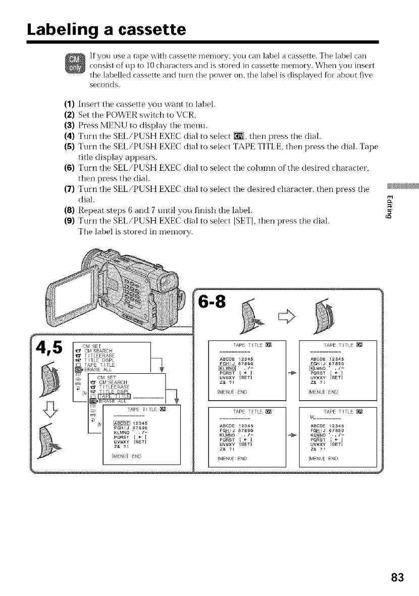 If you use a tape witb cassette memory, you can label a cassette. The label can