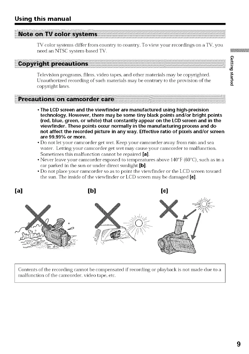 • Do not place your eamcorder so as to point the viewfinder o1"the LCD screen toward