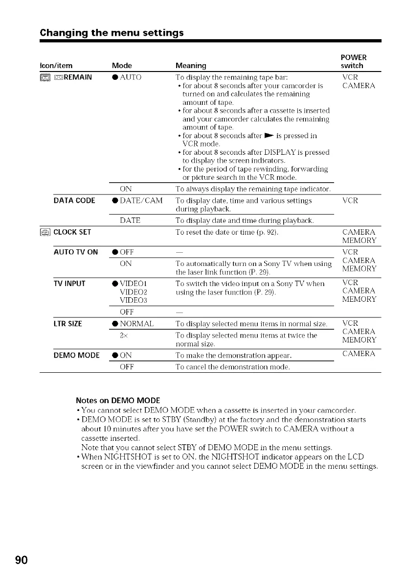 • You cannot select DEMO MODE when a cassette is inserted in your camcorder.