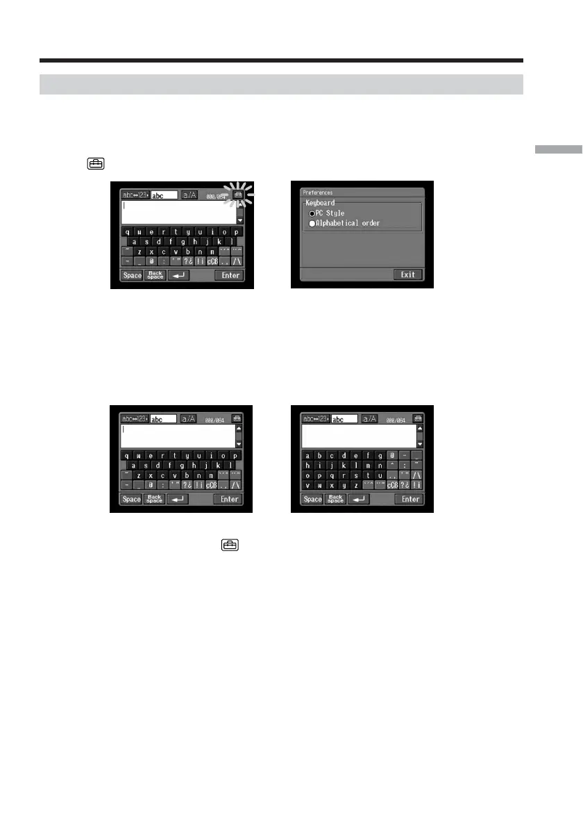 When [abc] is selected on page 12, you can select between two types of keyboard