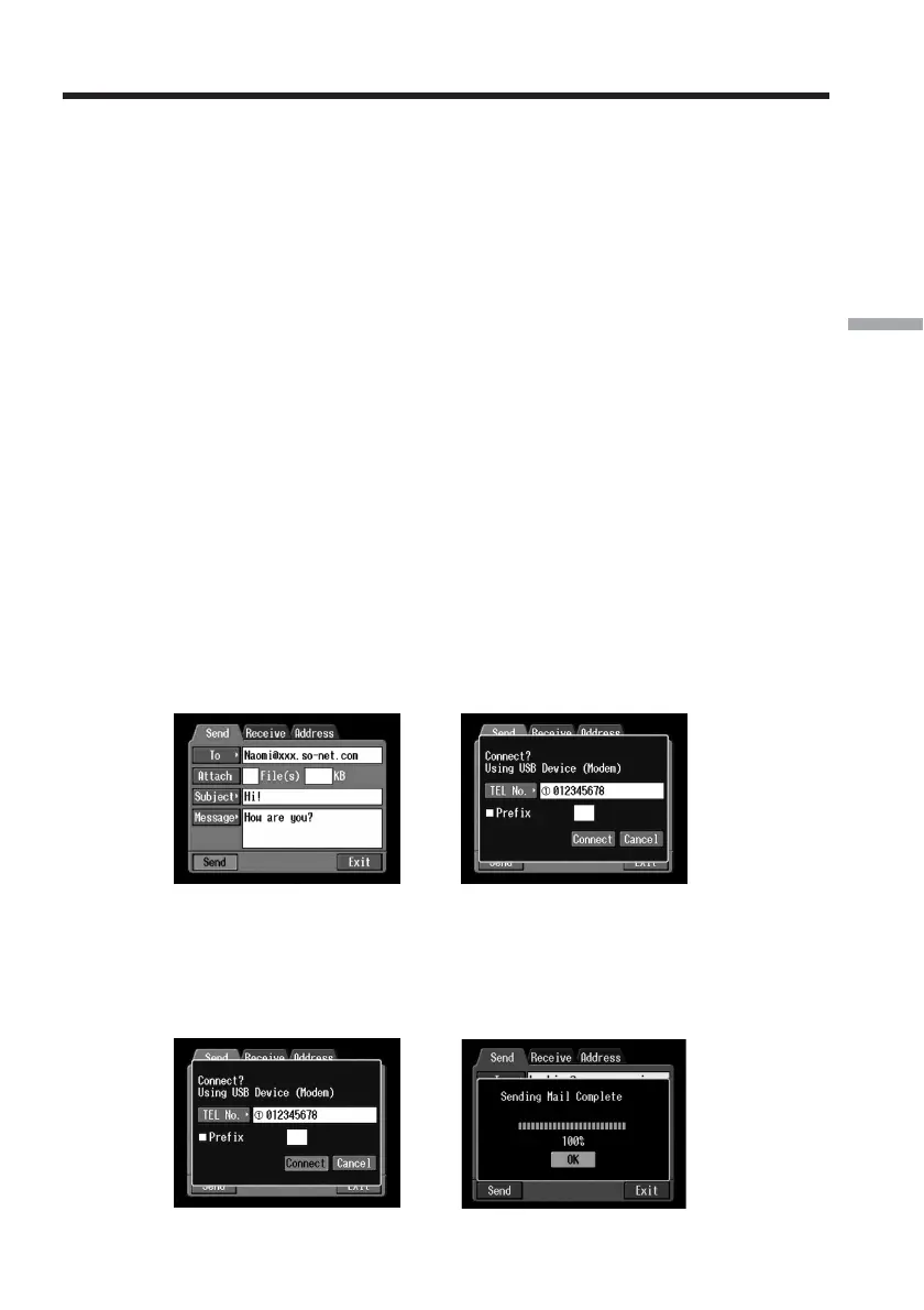 Mail Complete” appears. If you use a dial-up connection, the telephone line is