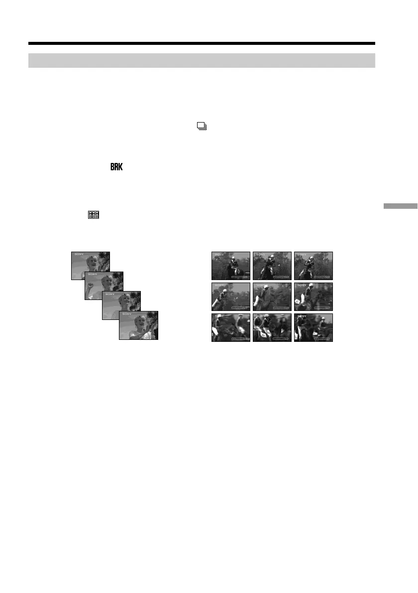 Your camcorder shoots nine still images at about 0.4 sec intervals and displays the