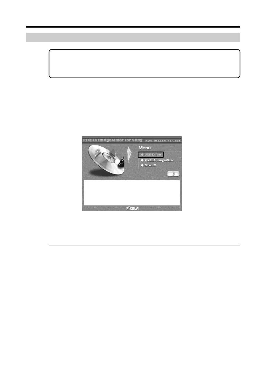 (3) Move the cursor to “USB Driver” and click. This starts USB driver installation.