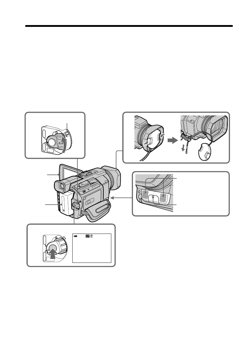 (1) Remove the lens cap by pressing both knobs on its sides and pull the lens cap