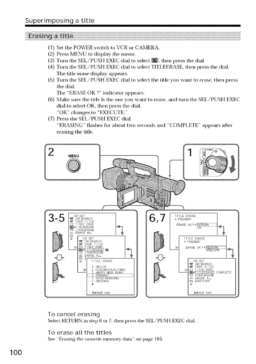 (4) Turn tile SEL/PUSH EXEC dial to select TITLEERASE, then press the dial.