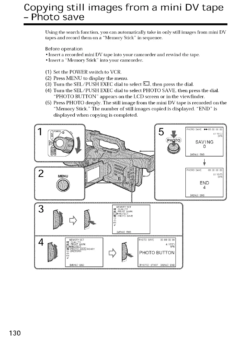 (5) Press PHOTO deeply. The still image from the mini DV tape is recorded on the