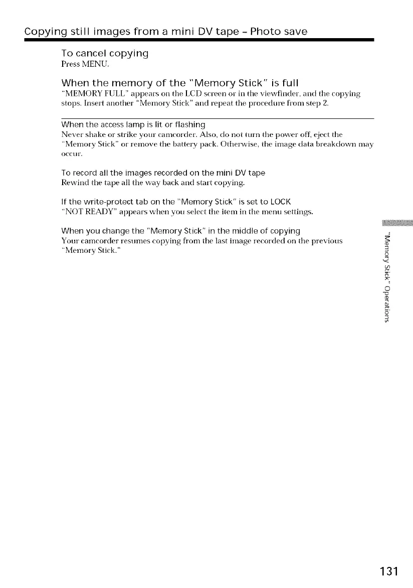 stops. Insert another "Memory Stick" and repeat tile procedure from step 2.