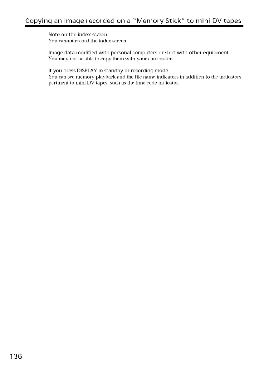 Copying an image recorded on a "Memory Stick" to mini DV tapes