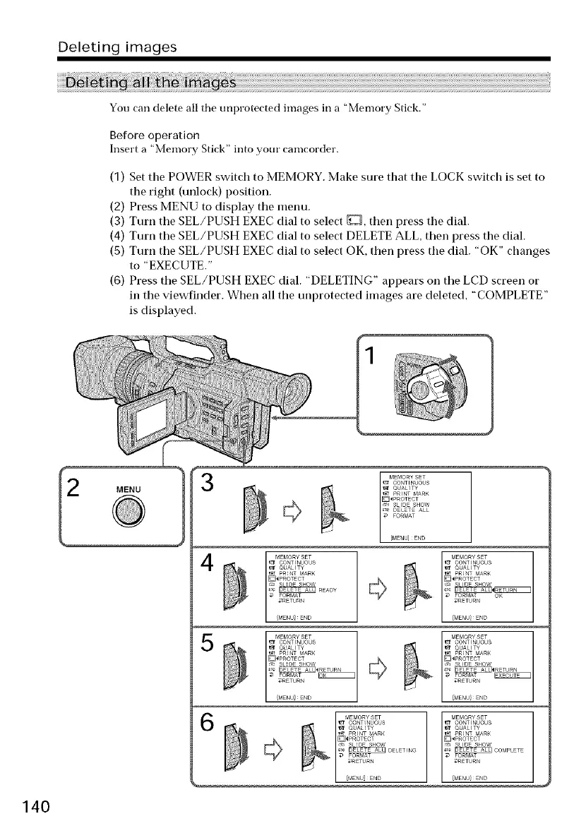 in the viewfinder. When all the unprotected images are deleted, "COMPLETE"