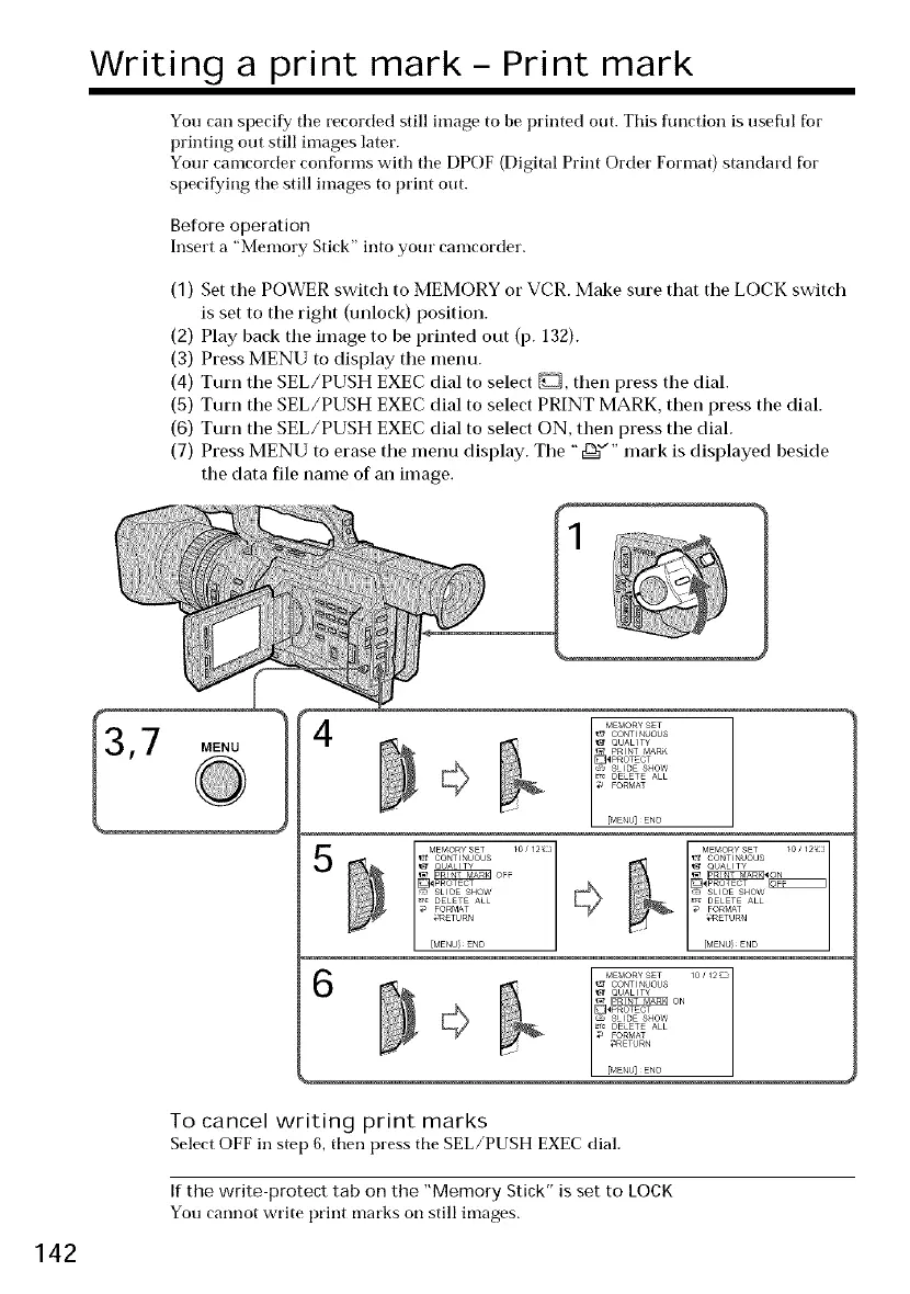 (5) Turn the SEL/PUSH EXEC dial to select PRINT MARK, then press the dial.