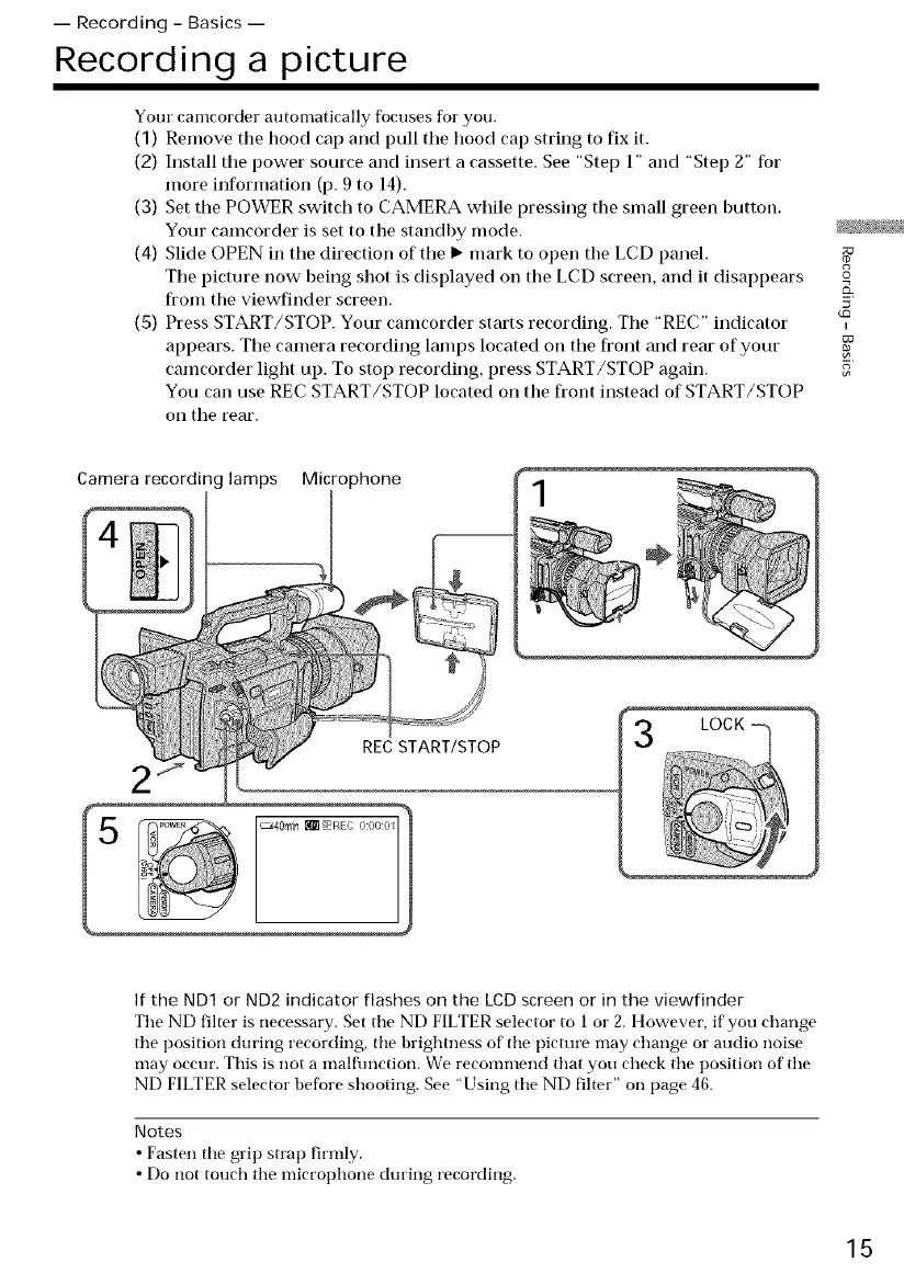 camcorder light up. To stop recorcling, press START/STOP again. 5