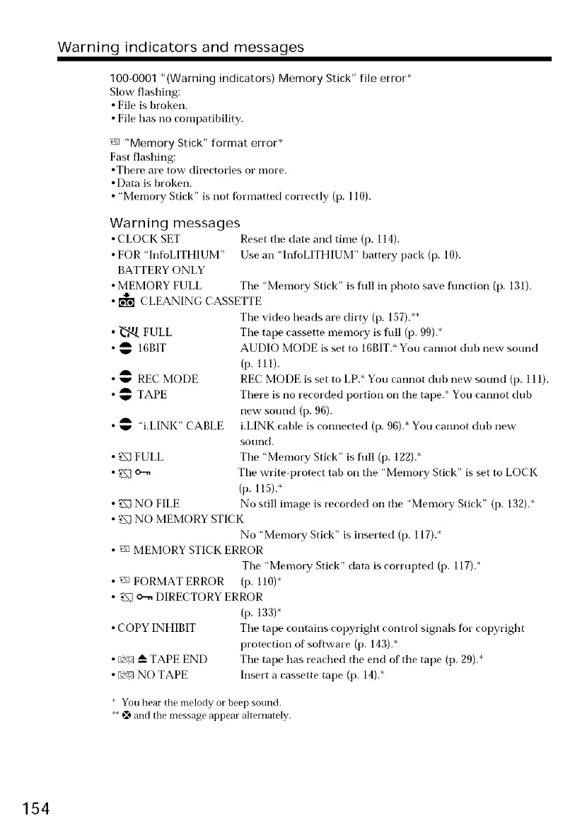 • MEMORY FULL Tile "Memory Stick" is flfll in photo save flmction (p. 131).