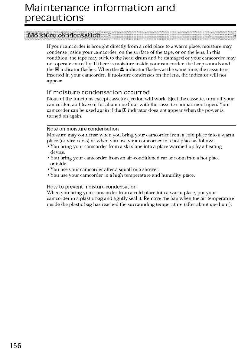 Moisture may condense when you bring your camcorder from a cold place into a warm