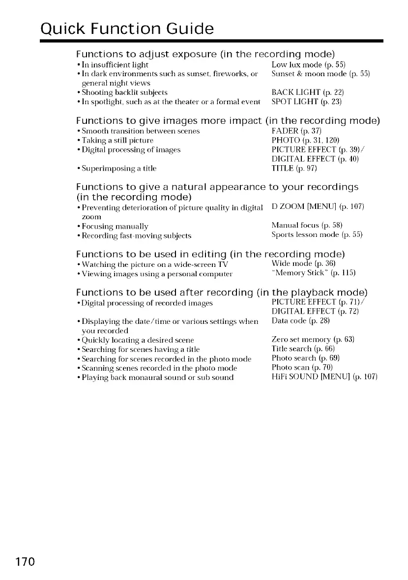•Digital processing of'recorded images PICTURE EFFECT (p. 71)/