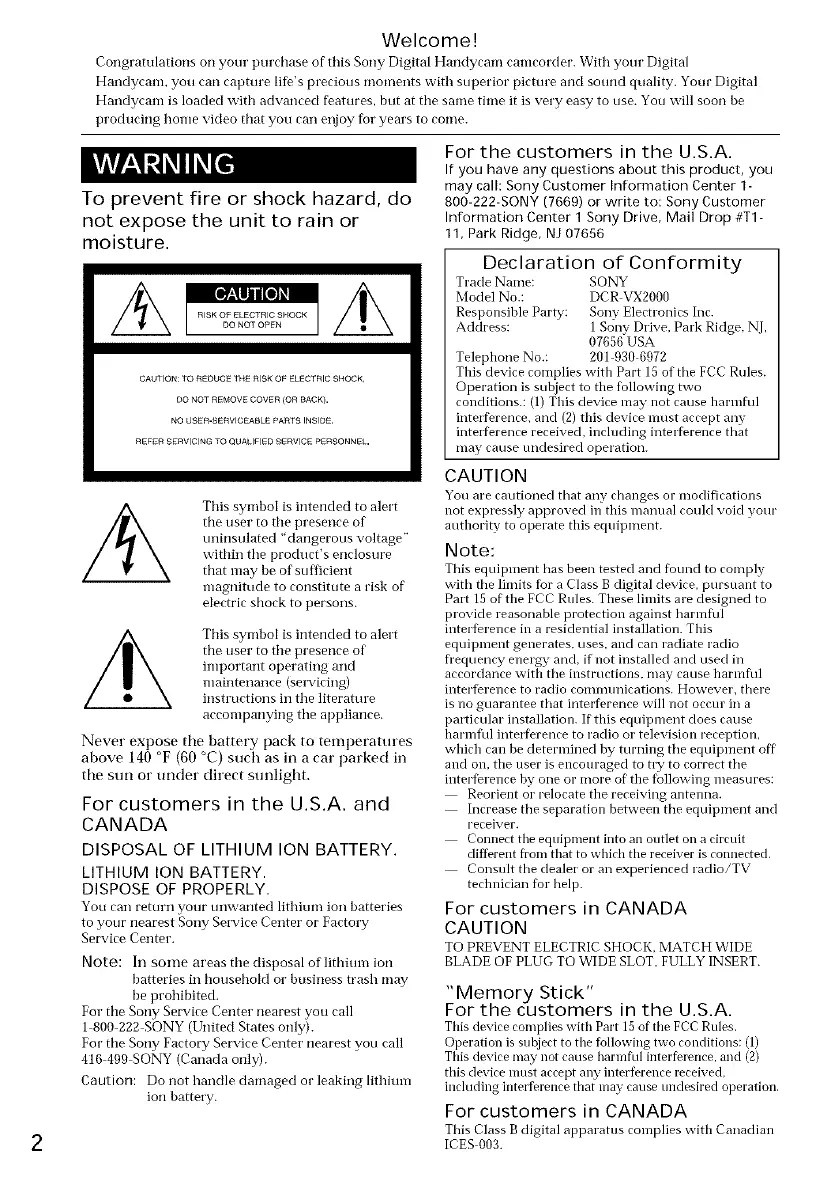 Congratulations on your purchase of this Sony Digital Handycam camcorder. With your Digital