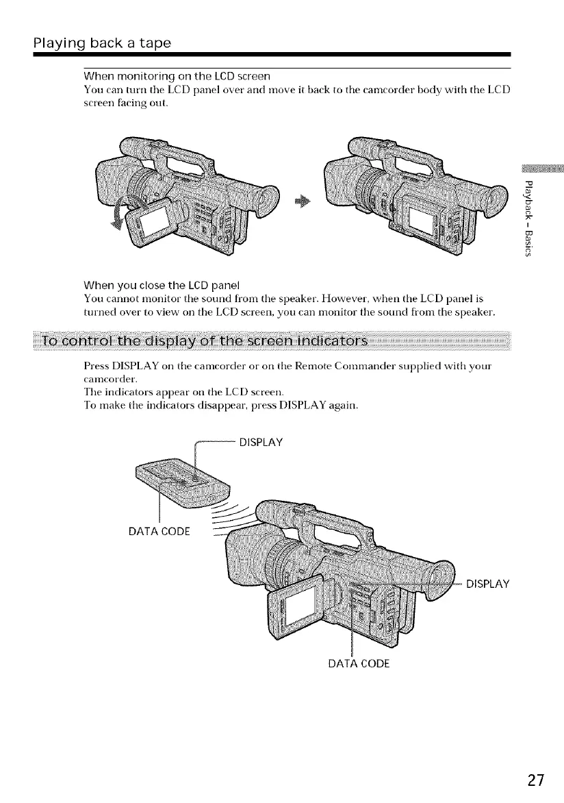 Press DISPLAY on tile camcorder or on tile Remote Commander supplied with your